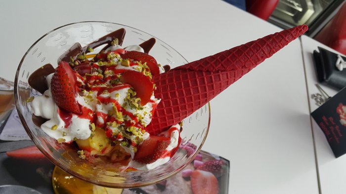 The Gelato Show ice cream store is one of the well-known brands in the city for those who wanted to eat cold ice cream of different flavors, or get a cup of cold or hot coffee, as people come to it from all over the city, and they order ice cream from chocolate and caramel foods, strawberries and kiwi , and many others, with additions of nuts and melted chocolate, and they can eat them on the seats of the place or get them as ready-made takeout meals.