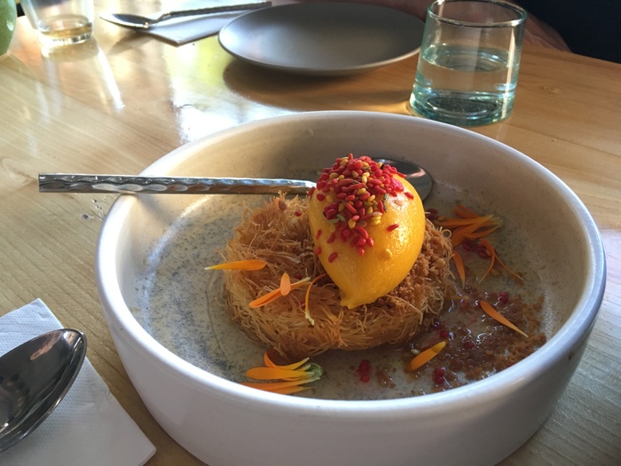 Gemmayzeh Street Restaurant is named after the bustling food district in Beirut, and serves authentic Arabic delicacies that will make you feel a lot of comfort and relaxation, and the menu there includes: lamb with pomegranate molasses, mint and pine nuts, classic fried cauliflower, and irresistible kunafa, and it features The restaurant has a distinctive interior decoration with copper panels, traditional lamps, marble and engraved chairs to add a popular character to the place, all to ensure you the utmost enjoyment when dining.