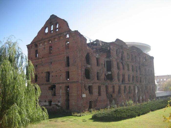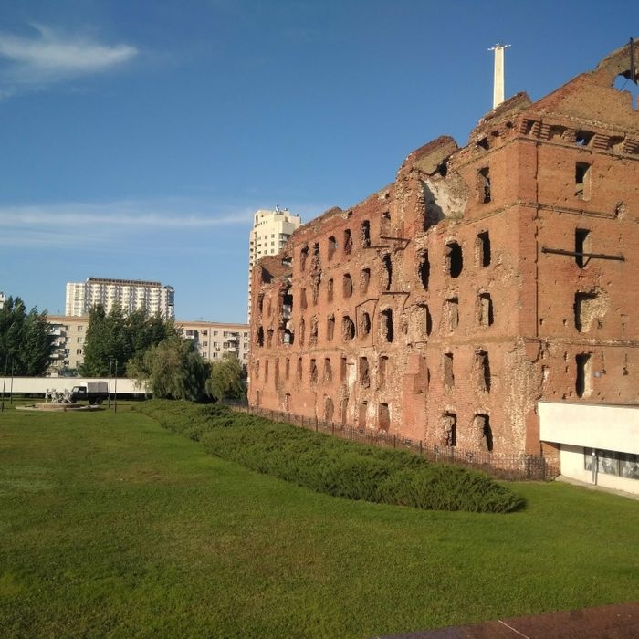 Historical brick steam mill ruins that were destroyed in the Battle of Stalingrad. The steam-powered mill was built in 1903 and was equipped with an electric generator and boiler plant. The mill was one of the main defensive sites in the middle of the Battle of Stalingrad, where it was destroyed and bombed, and thus the destroyed mill became evidence of the fierce fighting and the last heroism of the defenders of Stalingrad, and next to this archaeological site is the Stalingrad War Museum, and the mill is considered one of the main landmarks in the whole country that must who visited.
