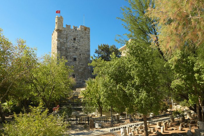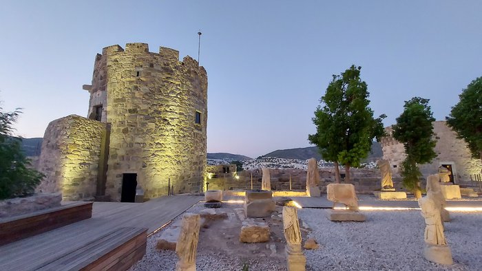 The German Tower is located in the square of Bodrum Castle, and it is considered one of the most important buildings of the castle. Here, the German knights, the smallest groups in the castle, used to live and train, and it was used as a meeting room and dining room, and it is believed that the German Tower was also used as a hospital. Today, it is used as an area where different types of flasks are displayed in the German tower.