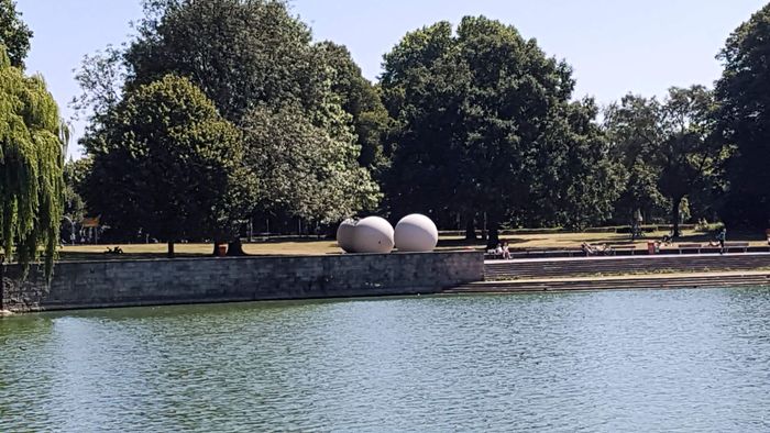 By enlarging and transforming ordinary objects into giant sculptures, Claes Oldenburg has become known the world over as the master of pop art. The artist transformed the city of Münster into a pool table in 1977, a nod to the city's history of war and the love of its citizens. For hot air balloons, there are three giant balls left in the large Asi garden, and although they are immobile, when standing next to them, one feels that they are about to roll.