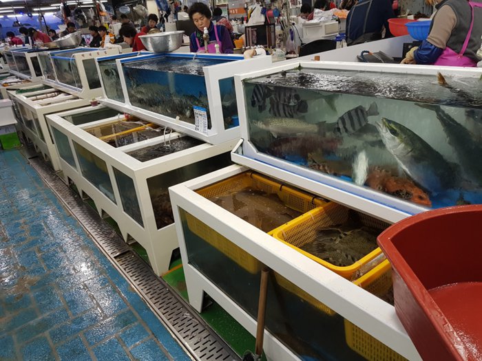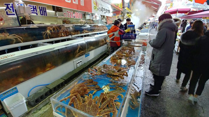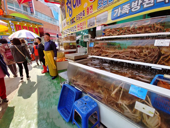 Gyejang Market is a traditional open market that sells live and dried seafood of all kinds. It has a long history dating back to 1944 as the place to go for fresh seafood in Busan. Lobsters and eels are highly valued in the market and are traded throughout the country. Around the market there are many restaurants that provide a sumptuous meal of fresh steamed crabs and grilled eels.