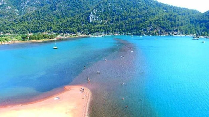 Sand Girl Beach is a beautiful beach surrounded by tall pine forests, and it is one of the quiet beaches that are not crowded with people, as it is about an hour away from the city of Marmaris. One of the most important features of this beach that makes tourists and locals flock to it is the low sea water level in it, where It allows individuals to go deep into the beach for approximately 600 meters, and the water will not exceed the knees. This phenomenon has been associated with the well-known legend in the region, which tells the story of a girl who wanted to cross the sea, so she put sand in her dress, in order to walk over it, until the sand ran out. And drowned, the legend is also one of the reasons why the beach is called Sand Girl Beach.