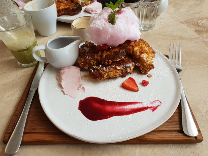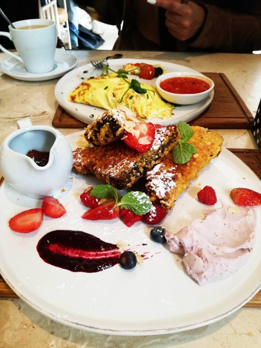 It's a cool coffee shop that's chic and simple thanks to well-known local design star Michael Chandler, who brings his signature style to every gorgeous nook and cranny. The bright and white interior has a contemporary vibe with clean lines and large glass windows, yet it features quirky Roman motifs like olive wreaths. Gold-plated gilt and ornate pillars, Service is relaxed and inviting, Menu showcases the best ingredients and carefully selected flavor combinations, From its delicacies to shakshuka, pizza, pasta, burgers with crispy fries and much more, an impressive selection of pastries and scrumptious cakes is also available, and an impressive selection of beverages Variety of soft drinks, coffee and milk, wonderful juices.