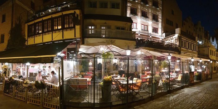 Gold Wasser Restaurant has many ingredients that make it a unique place and a destination for many locals and tourists alike, as it overlooks the Motlawa River and is characterized by its elegant interior decoration and warm intimate atmosphere. The chef in charge of preparing the dishes is keen to satisfy all tastes, as he offers a variety of delicious Polish and international dishes, and uses fresh ingredients when preparing food. When visiting, you can try mussels with creamy sauce, garlic and onions, Italian risotto, beef steak cooked in butter and served with vegetables and fresh herbs, or Polish dumplings stuffed with bacon and onions; For dessert, there is chocolate cake with white chocolate mousse, vanilla and cheesecake.