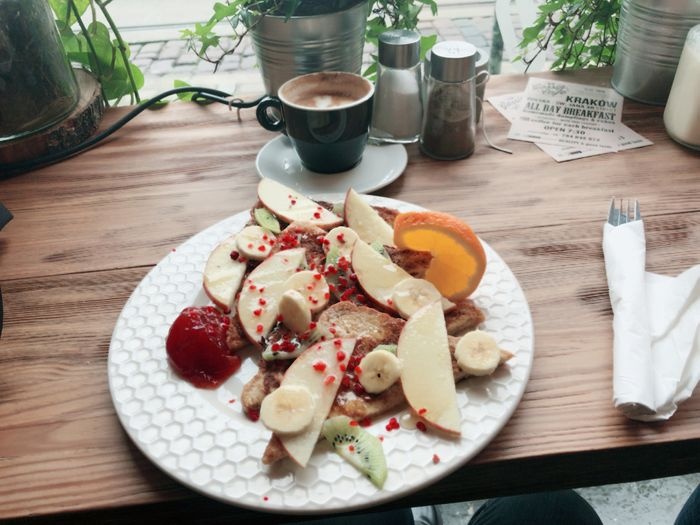 The best cafe in Krakow, which is characterized by great service, friendly and always smiling staff, in addition to the pleasant atmosphere of the place with quiet music, as it features comfortable and elegant interior décor that gives you the right atmosphere in order to have a delicious meal and your delicious drink. The café serves delicious pastries of all kinds, biscuits, baked goods, omelettes and pancakes with fruits and honey. In addition to various salads such as fresh fruit salad.