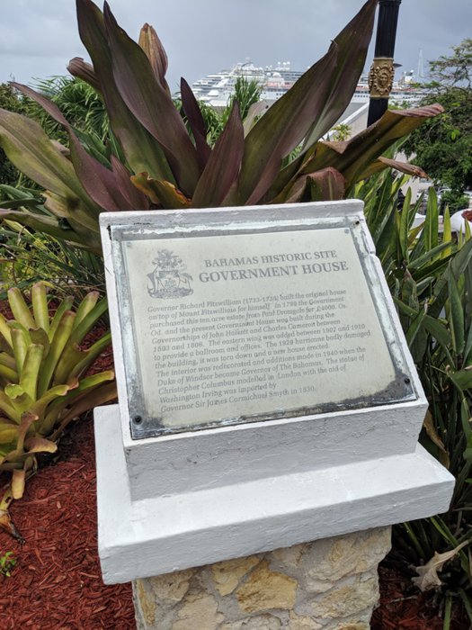 The Government House is the official residence of the President of the Bahamas. The landmark was originally built during colonial times and was the residence of the Governor of the Bahamas. It later continued in its role as the official residence of politicians and the office of the Governor-General after political independence from the United Kingdom in 1973. Built on a hill known as Mount Fitzwilliam and completed in 1806, this imposing building, built of stucco coral rock, is the most prominent example in the Bahamas archipelago. On Georgian Colonial Architecture.