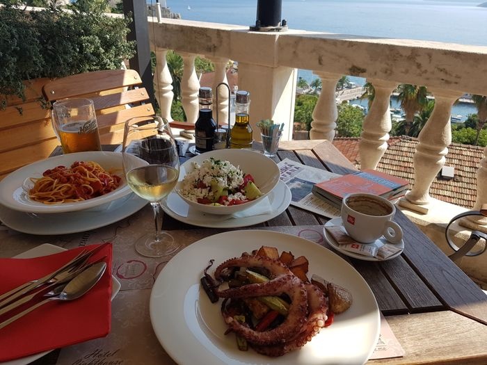 Gradska Restaurant is located on the edge of the old town of Herceg Novi, and it offers a wonderful view of the bay, and it is surrounded by charming old palm trees on all sides, giving it a unique Mediterranean look. The restaurant has two large outdoor terraces overlooking the sea, and its menu includes local and European specialities And international, Italian dishes and fresh seafood, it also offers a wide selection of refreshing drinks and some homemade desserts.