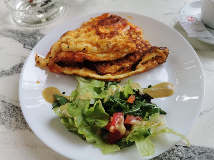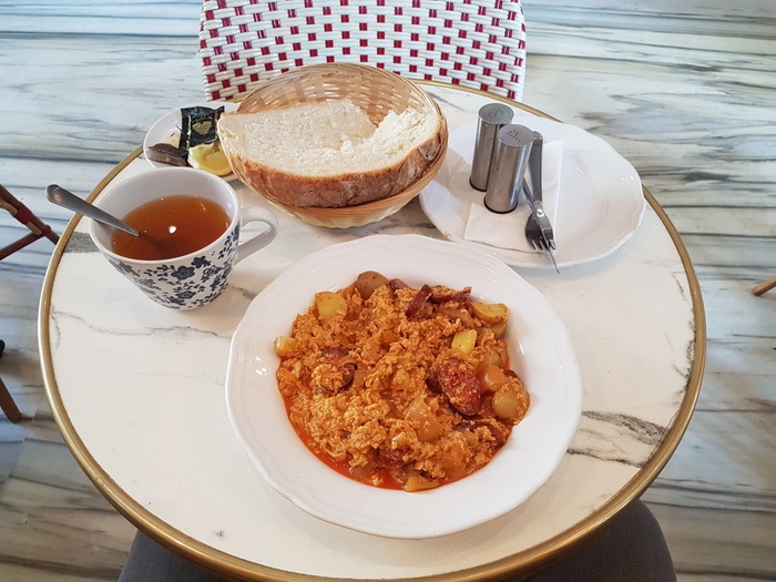 This café serves French and Moroccan dishes to its patrons, and is characterized by its intimate character and simple modern décor. It also gives you the option to sit on the balcony or inside the restaurant. This place is famous for its delicious and varied breakfast dishes, as it serves omelettes of various kinds, such as an omelet with blue cheese, an omelet with sausages, and an omelet with delicious yellow cheese, in addition to the Moroccan dish of potatoes, eggs and fried sausages together. Other than that, it serves sandwiches, salads, and delicious pastries, and of course there are hot drinks such as tea and coffee, as well as cold drinks.