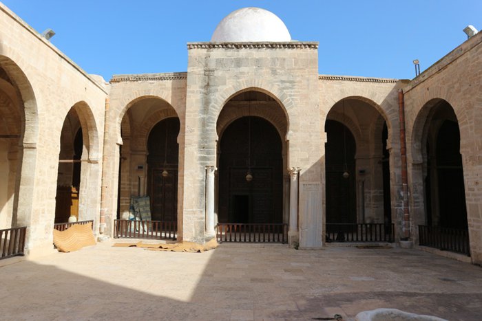 The Great Mosque of Sfax is the first mosque built in the historic city of Sfax, Tunisia, and it was built during the rule of the Aghlabids in Ifriqiya (Near Morocco) in the year 849 AD, the same year in which the city wall was built, and the construction of the mosque was commissioned specifically during the reign of the imam piercing He is a Maliki jurist from Kairouan. The mosque is located in the center of the old city of Sfax and occupies its center, which made the planning of the city of Sfax very similar to the planning of Kufa. One of the first Islamic cities, it is characterized by a pyramidal minaret with serrated balconies, kufic inscriptions, and various floral and geometric decorations.