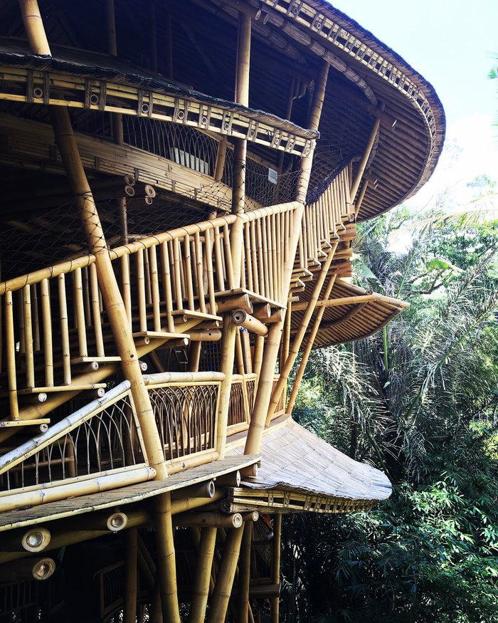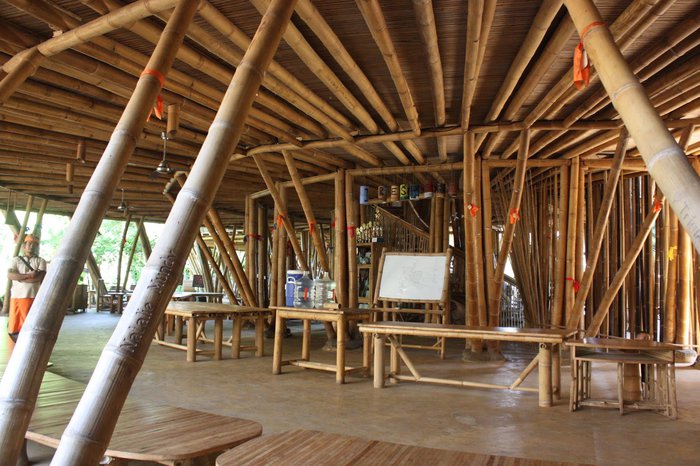 The Green School is a private and international eco-friendly school and kindergarten built entirely from bamboo and recycled materials, aiming to bring children together with their environment where students and teachers use bio buses for transportation that only run on used cooking oil which connects sustainability with education in a holistic way, it also has a great location Opposite Ayung River in the jungle.