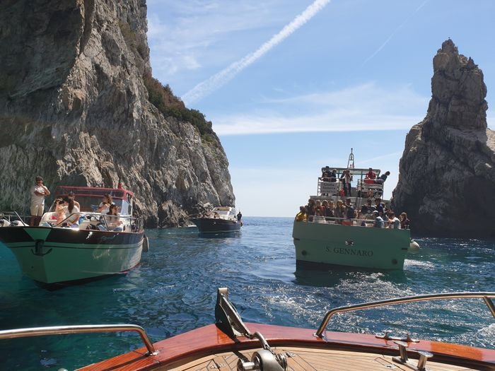 The island of Capri is famous for the group of colorful sea caves spread throughout it, and the green cave is considered one of the most beautiful of these caves. Visitors can enter the cave by using boats and small boats and rowing with wooden planks, or by boarding a ship and wandering around and watching the cave from the inside and the picturesque natural features surrounding the site.