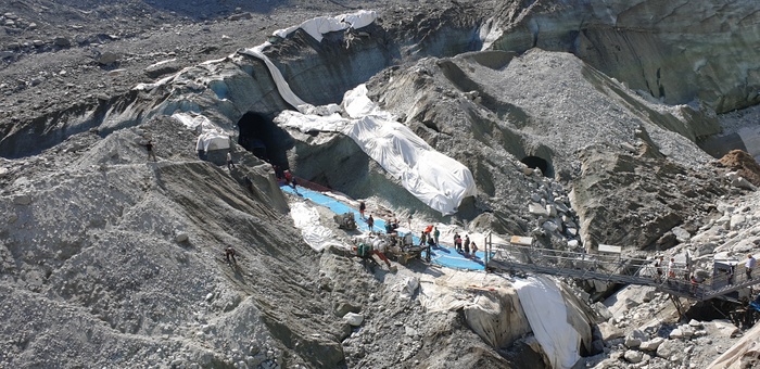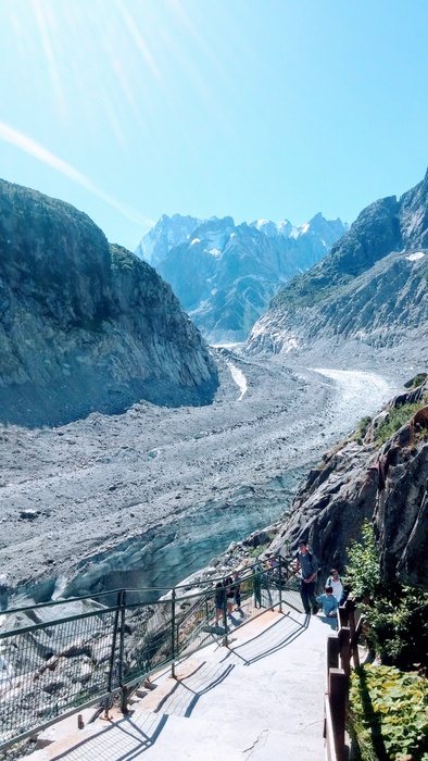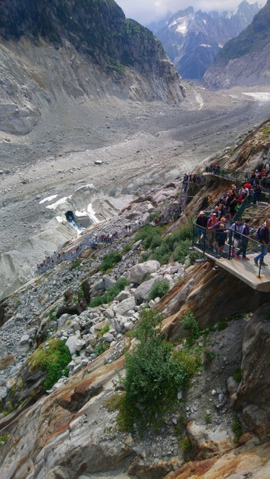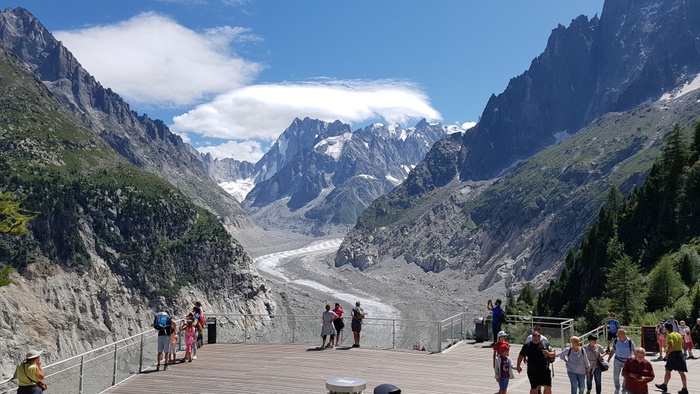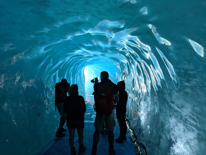 The Ice Cave of Chamonix is a cave that has been drilled every year in the sea of ice since the mid-nineteenth century, and you can see the drilling equipment outside the cave, and the cave from the inside is divided into multiple rooms that contain benches carved out of ice. The place receives 350,000 visitors per year, which makes it one of the most visited sites in the region. And don't forget to bring a hat with you to avoid drops of water falling from the cave.