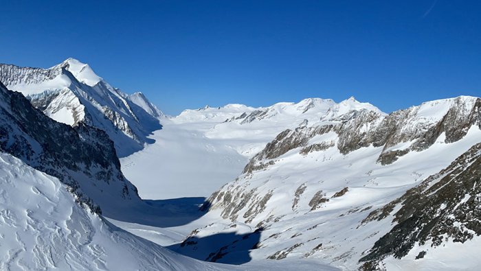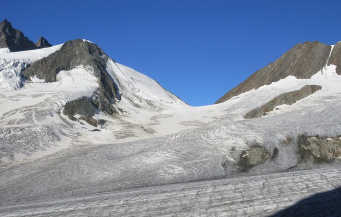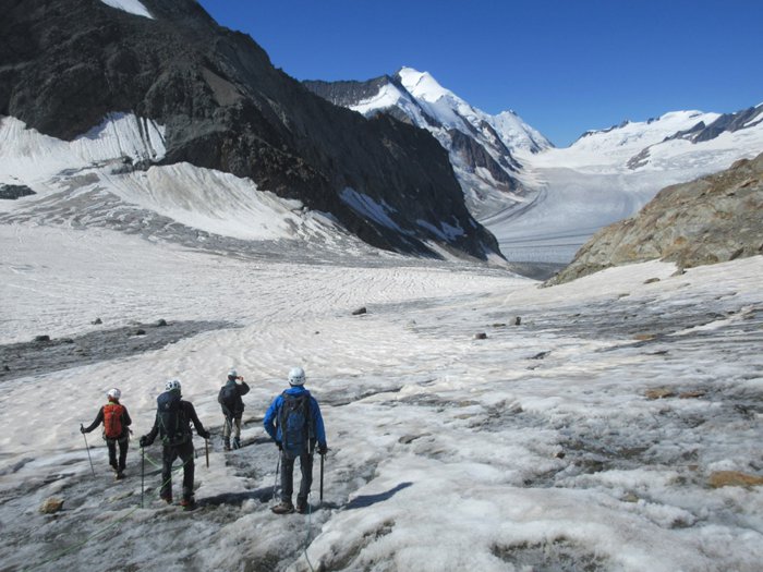 Grunhornlock is a high mountain pass in the eastern Bernese Alps, connecting the Aletsch Glacier and the Fischer Glacier in the canton of Valais. This trail is distinguished by its coldness and the accumulation of white snow above it due to its high altitude. You can cross through it when you go on a walking path with a group specialized in these paths to reach the peaks and mountains in the surrounding area to enjoy the beauty of the landscape.