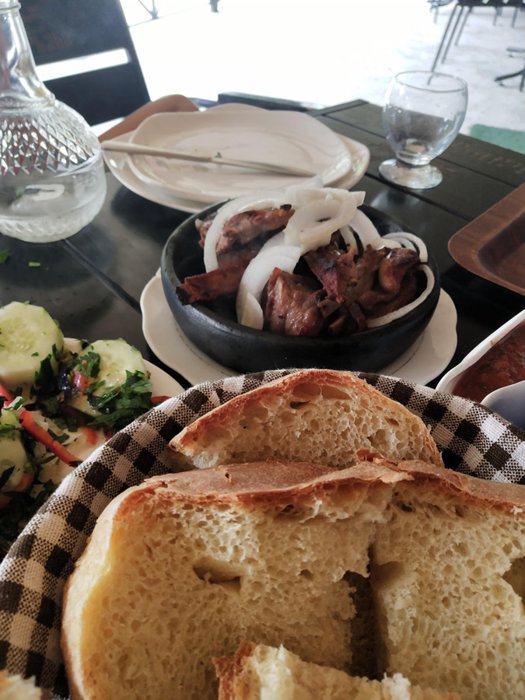 In addition to the beautiful view of the surrounding nature, Jvirabi Restaurant has a unique menu rich in grilled dishes from the local cuisine, including grilled steaks, grilled fish, and grilled meat fingers, which are served with fresh salads or appetizers of fried eggplant with almond sauce, in addition to drinks. Varied refreshing.