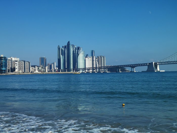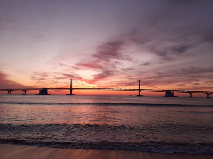 Gwangalli Beach is 1.4 km long and 25 to 110 meters wide and is famous for its fine sand. The area has undergone a water cleaning program, and as a result, the beach water has become very pure, which attracts many young tourists to practice various water activities. The area around the beach is filled with romantic restaurants and cafes. , as well as shops selling famous fashion brands, and the beach is a destination for many people in the evening to enjoy the bright lights of the Guangandejiu Bridge stretching across the skyline.