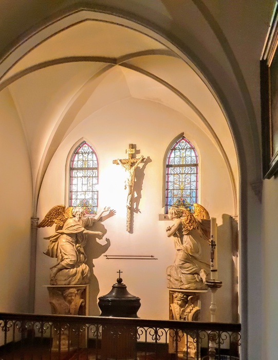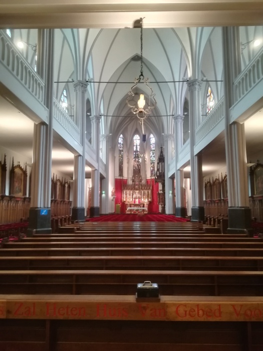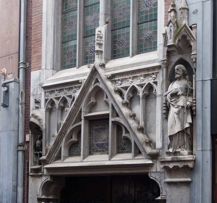 Located on Amsterdam's shopping street Kalverstraat, this parochial church originally served the city's persecuted Catholic community. Because of the dominance of Calvinism, the original Catholic Church was built without aesthetic flares associated with the faith to hide its presence. This modest design succeeded in deceiving the authorities and allowed the parishioners to practice their religion in relative peace. Its entrance is marked by two life-size sculptures of St. Joseph and a large parrot perched on top of the platform.