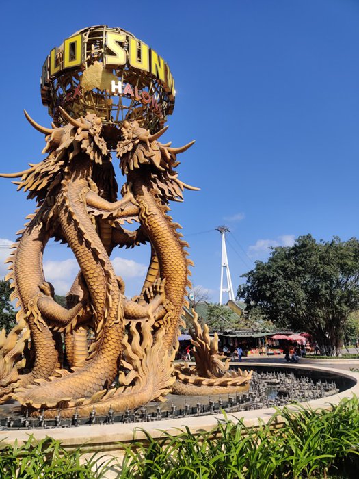 Halong Queen Cable Car belongs to the Sun World Halong Complex, which covers an area of 200 hectares. It was opened in June 2016. Its length is truly amazing. The cable covers a total inclined distance of about 2000 meters. There are two concrete towers on both sides of the bay, one of which is 188.88 meters high. The other is 123.45 meters, and the cable car allows passengers the opportunity to enjoy the beauty of Halong Bay from above, in addition to taking amazing pictures of ships and yachts sliding gently on the blue waters of Cua Loc Bay.
