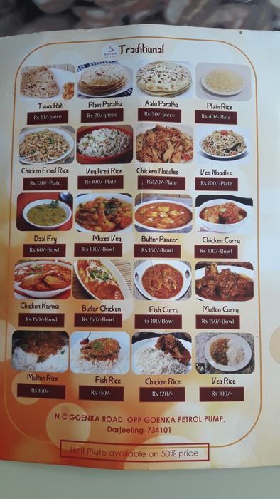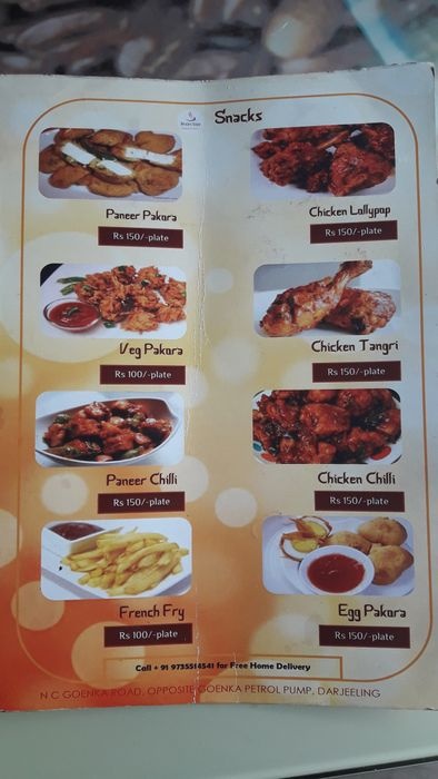 The menu in the restaurant is divided into several sections, where you can start with the appetizer section, including crispy egg balls, chicken fingers, and fried potatoes. For main dishes, the restaurant offers a variety of traditional Indian dishes such as fried rice with chicken, chicken curry with white rice, and noodles. With pieces of chicken and vegetables, and the last section of the menu is dedicated to drinks and desserts, and among the available options: natural juices, coffee, tea and milk, where you can eat your meal in the place and then sip your favorite drink with a delicious piece of dessert at reasonable prices.