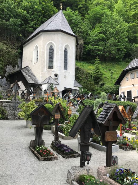 One of the most interesting tourist sites in Hallstatt is the Hallstatt Bones House in St. Michael's Church. It dates back to the 12th century and is located next to the Catholic parish church. Every year, visitors from all over the world come to enjoy the view of the extraordinary collection of more than 600 Artfully painted skulls, many of which were decorated at the end of the eighteenth century and a few in the twentieth century.