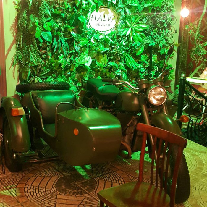 Halva Shovalan Restaurant has a unique interior design, as there are some old classic cars and bikes around the restaurant, next to comfortable seats, where customers sit to order one of the most delicious local dishes, including grilled steaks with fried potatoes, cold meats with pickles, Eggplant rolls with walnut sauce, cheese with jam, and many more.