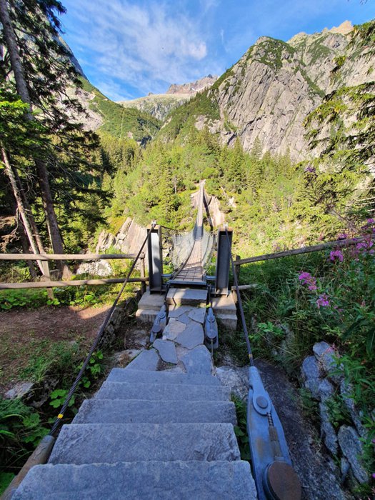 The Handikvall suspension bridge, enchantingly surrounded by the beautiful Swiss nature, as the bridge connects two hills, and water rivers pass from below, which the passer-by over the bridge can clearly see, in the deep valley. The bridge also provides a view of the sky on the horizon and the clouds that permeate it, in addition to the peaks Snowy mountains, individuals come to the bridge to experience a rush of adrenaline in the body as a result of the height, and to take the best memorial photos.