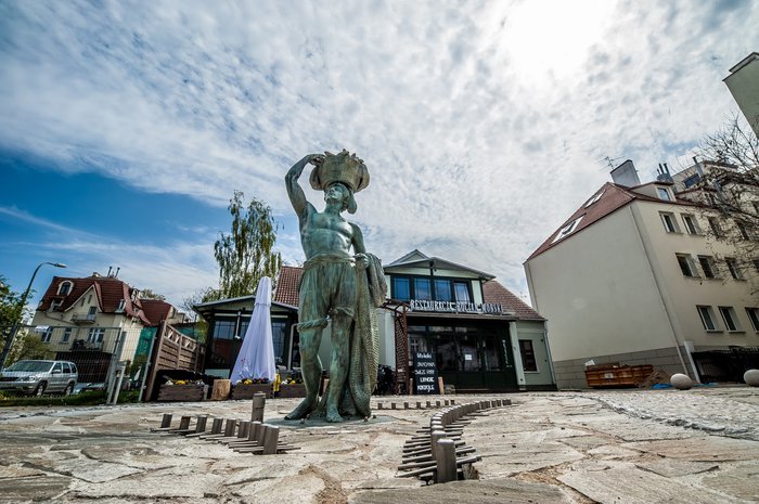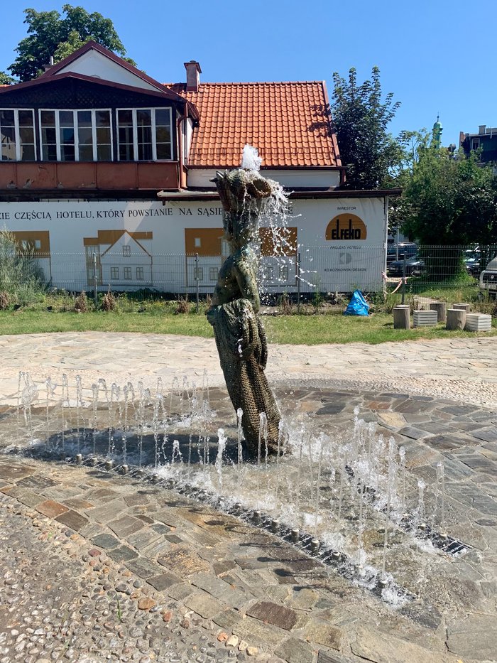 The Hansel Fisherman Fountain is located in Sopot Friends Square, and it was unveiled on April 5, 1998 AD, as it was designed by architect Brunon Wandtke. The sculpture of the fountain shows a young man carrying a basket of fish on his head, and the statue of Hansel the Fisherman is one of the symbols of Sopot. In 2010 AD, the fountain was dismantled and placed in a warehouse until the square was rebuilt, and after renovation in 2014 AD, a statue with a new fountain was placed in the square again.