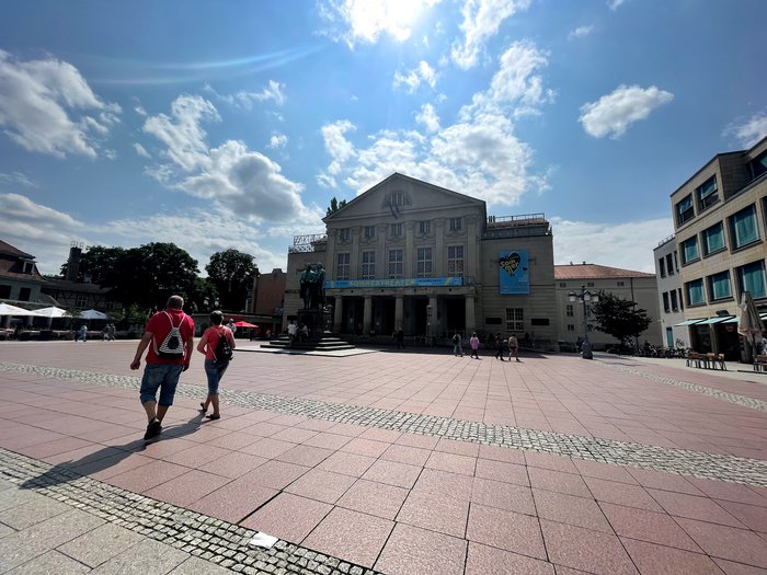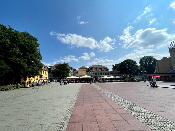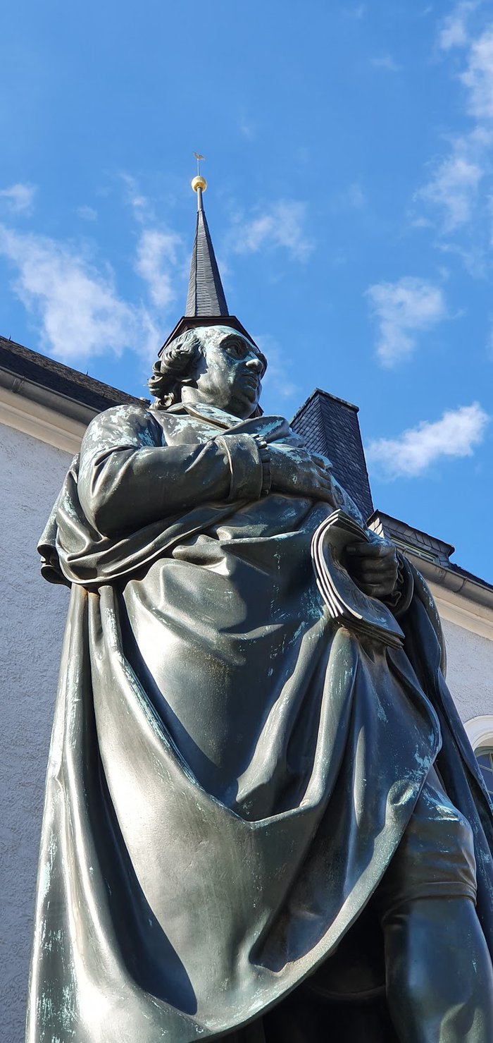 The Herder memorial was established in honor of the German philosopher Johann Gottfried Herder, who is considered one of the most important classical philosophers in the history of Weimar and Germany in general. The memorial was opened in 1850 AD on the occasion of Herder's 106th birthday. His right hand is on the heart, while he holds in his left hand a text with the slogan "Light, Love, Life" written on it.