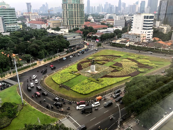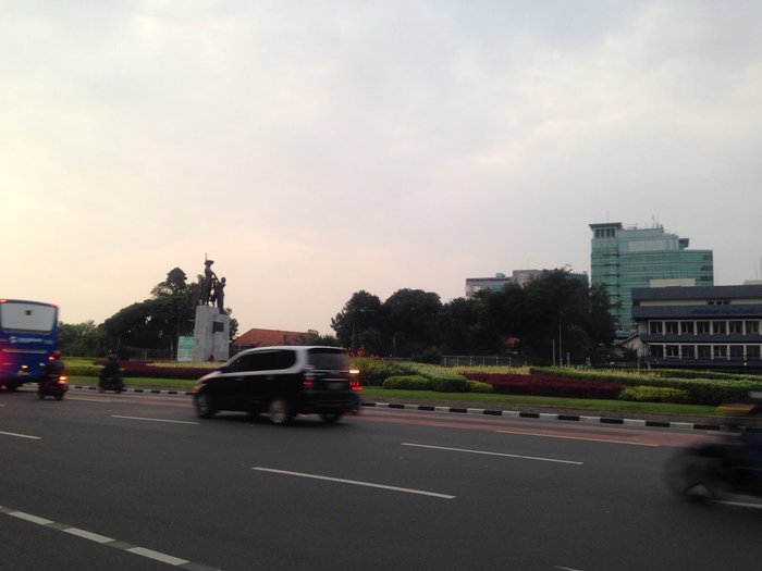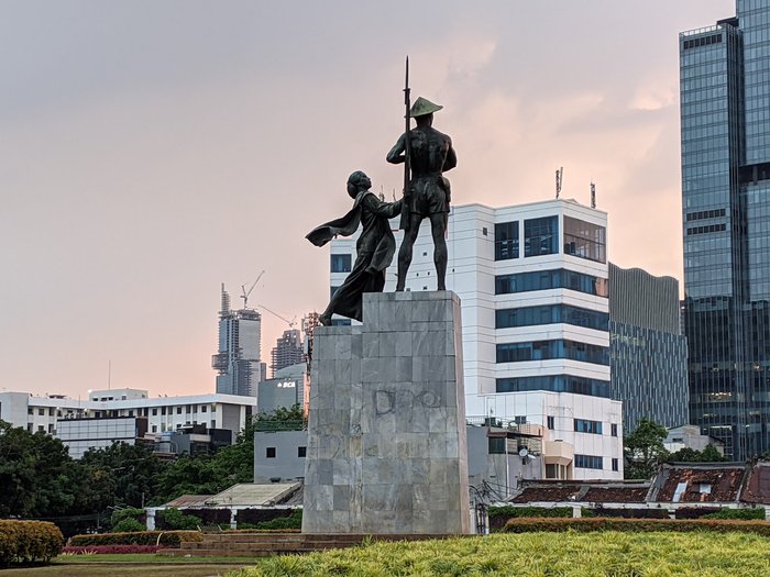 Known locally as Tojo Tani, the Monument to Heroes is a bronze statue located just about 500 meters south of Monas in Jakarta. It was built to celebrate the heroes of the struggle of the Indonesian nation. It depicts a peasant with a gun on his shoulder and behind him a mother offers him a plate of rice and on his head is a traditional farmers' hat. Indonesia. It is also surrounded by a beautiful garden.