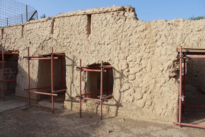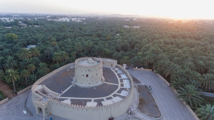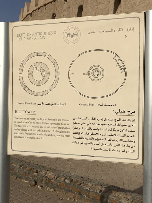 Located in Al Ain in the Emirate of Abu Dhabi, United Arab Emirates, Al Hili Fort was built in the early 20th century and protects the Al Hili Oasis, along with the nearby Al Hili Towers and Burj Al Hili. The fort has a square ground plan centered around a circular watchtower. Its walls are made of bricks and mud. Palm trunks are used for ceilings and gypsum for decoration.