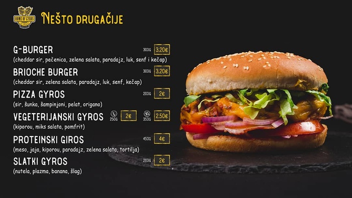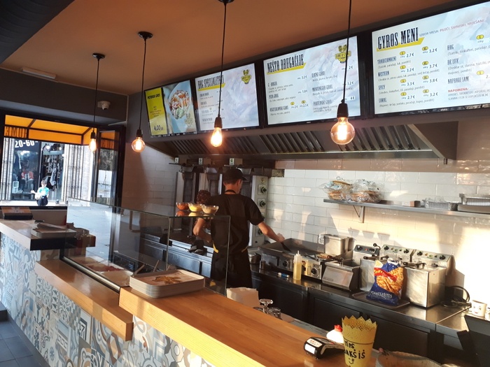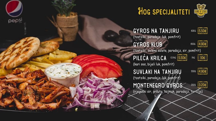 It is a wonderful and distinctive fast food restaurant in Podgorica, Montenegro. Which serves the most delicious Greek and Mediterranean dishes in a comfortable atmosphere, with friendly staff, where you can enjoy the experience of eating the most delicious meals offered, including: burgers with fried potatoes, various and different sandwiches, shawarma, kebabs, pizza, various delicious salads and much more. It also provides a wonderful range of refreshing and different drinks. You can choose the place you want to sit when eating your meal, either indoors or outdoors, or you can take your meal with you.