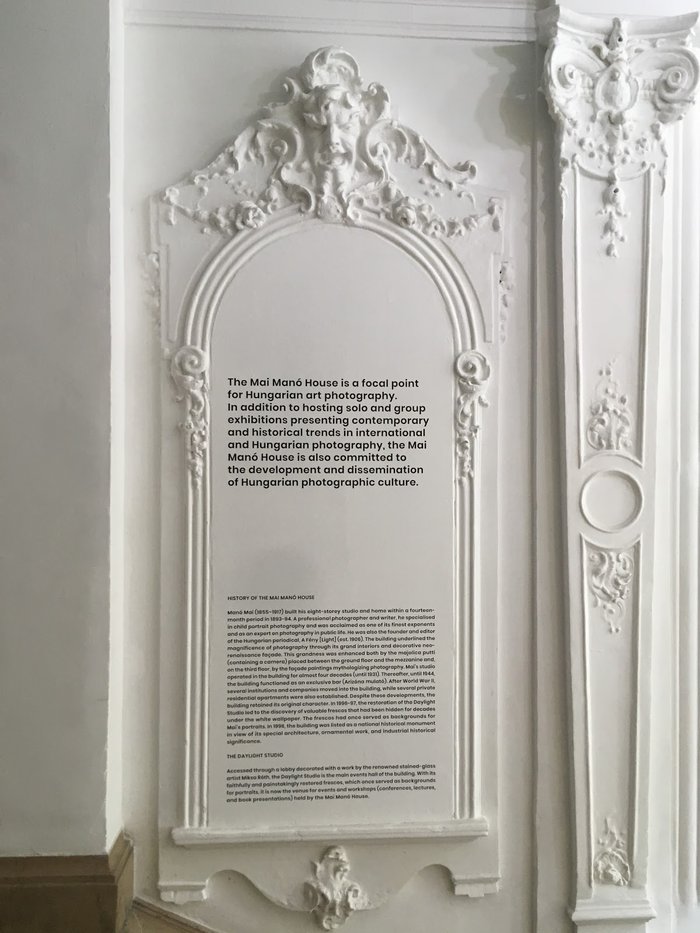 The Hungarian House of Photography is located in Budapest, Hungary, and it is a multi-storey building where the My Manu Gallery is located on the first floor and the Hungarian House of Photography is located on the second and third floors under the protection of historical monuments; Its primary mission is to give home to Hungarian and international historical and contemporary pictorial exhibitions. Built in 1894 and used as the home of the most famous music club in Budapest called Arizona, but the owners were deported by the Hungarian Nazis in 1944, the building later served as a school and then as a showroom for the Hungarian Motorists Club for thirty years; Until it finally became a photography gallery.