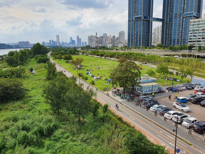 Ichonhangang Park consists of Nodolsum Island and the northern banks of the Han River. Canola flowers, evening primrose, reeds, and other aquatic plants bloom along the banks throughout the season, making the park a popular picnic, walking, and cycling destination in Seoul. Despite its downtown location, Ichonhangang Park is a very quiet area that allows many locals and tourists to enjoy outdoor sports and leisure activities.