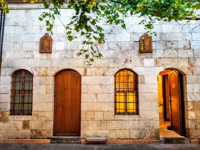 Imam Chadash Kebab and Baklava is located in a beautiful wooden building built in the traditional Turkish style. It serves a wide variety of delicious traditional Turkish dishes, the most famous of which is Lahm Bi Ajen; It is a flatbread covered with minced meat and vegetables. Its menu also includes many excellent grilled meat dishes and sausages made of lamb and grilled vegetables. Most meals come with a side dish of homemade yogurt. As a dessert, you can try the delicious Turkish baklava, which is one of This restaurant's specialty.