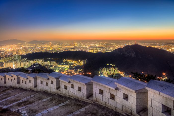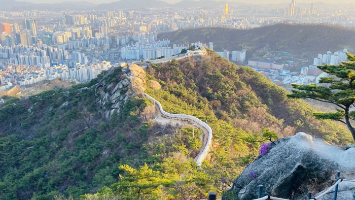 Inwangsan Mountain is a rocky mountain in the center of Seoul, and it provides enchanting views of Gyeongbokgung Palace and other landmarks in the city, and it has many wonderful natural features, and it is also home to the most important North Korean shrine in Korea, and part of the Seoul city wall extends along it, apart from its picturesque views The mountain is a popular destination for outdoor sports and makes for a relatively easy hike, as it only takes two hours to hike along its hills.