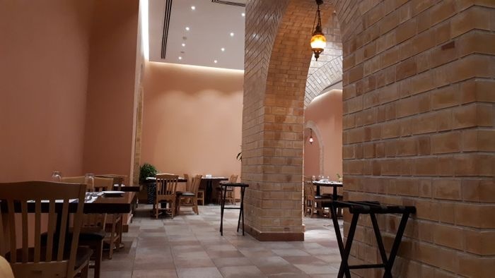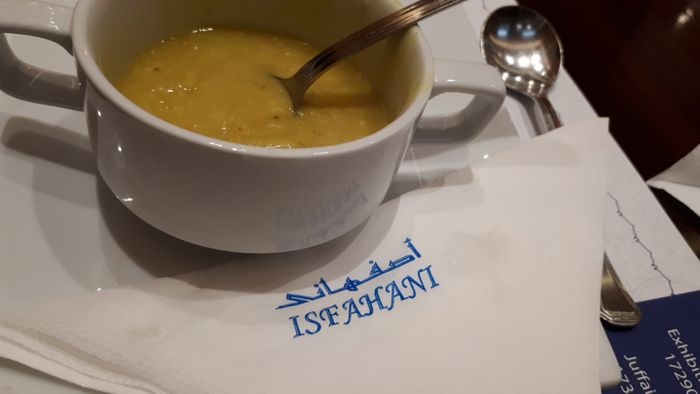 Isfahani Restaurant is one of the most beautiful restaurants in Isa Town, as the restaurant is characterized by its interior design inspired by ancient Persian architecture methods in terms of the use of stucco and mosaics in decorating the walls, along with decorative glass dinnerware. The restaurant offers many foods derived from traditional Iranian cuisine, including; Kebabs, eggplant and meat stew, Iranian fisanjan dish made from ground walnuts and pomegranate molasses, among others.