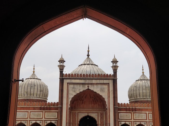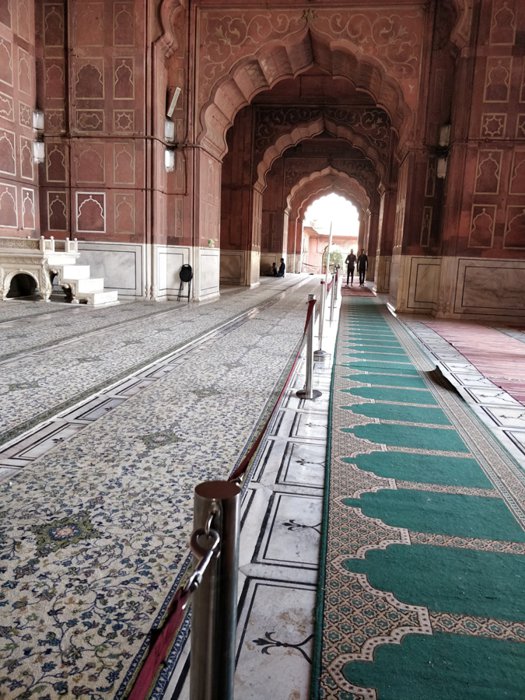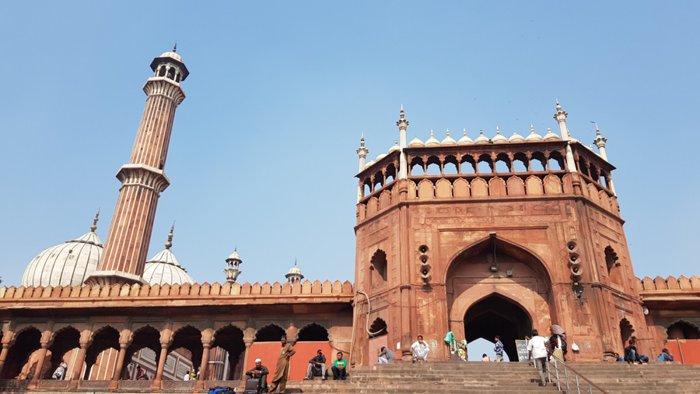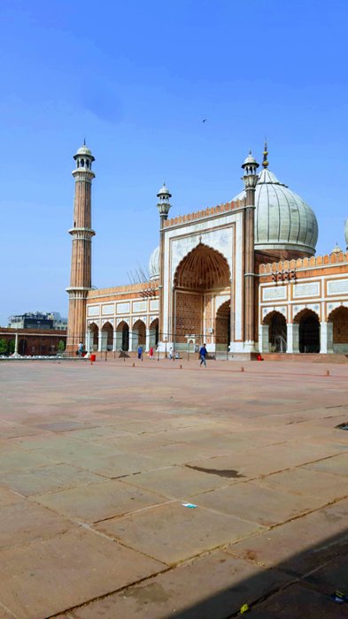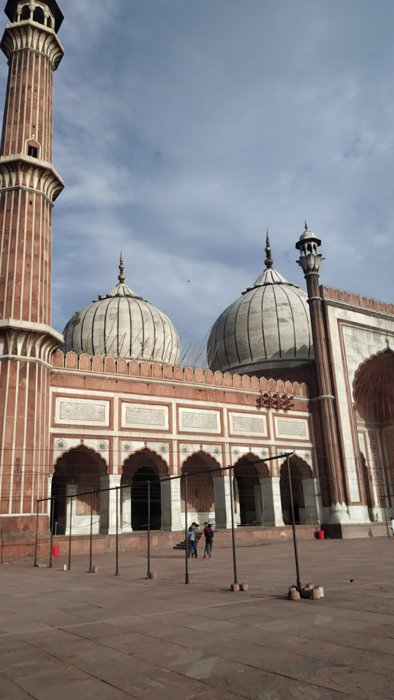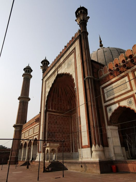 The Jama Masjid in Delhi is the largest of its kind in India with a courtyard that can accommodate 25,000 worshipers. Its construction began in 1644 and ended up being Shah Jahan's last architectural achievement; The Mughal emperor who built the Taj Mahal and the Red Fort, and the majestic design mosque contains three large gates, four towers, and two 40-meter-high minarets built of red sandstone and white marble, and tourists can rent robes at the northern gate so that they can visit its inner courtyards.