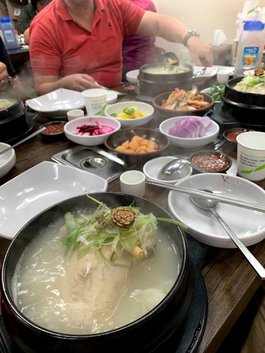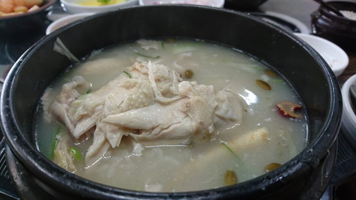 Jangsosam Restaurant is a traditional Korean restaurant located in Busan and is famous for its delicious local ginseng chicken soup that is full of healthy nutrients, making it an ideal dish for the colder months. Delightful colors on the table, and the restaurant has an authentic Korean atmosphere.