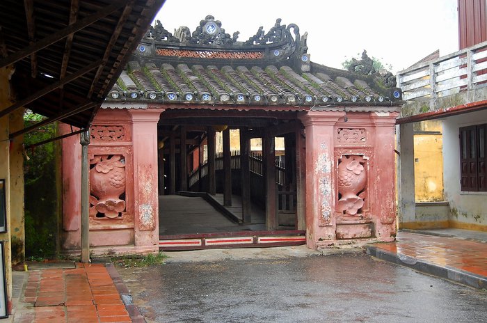 The symbol of Hoi An, the Japanese Covered Bridge was first built in the 1590s by the Japanese community to connect it with Chinatowns; Over the centuries the decoration has remained in the original Japanese style The structure has been built sturdily because of the danger of earthquakes At the entrances to the bridge there are statues A pair of monkeys on one side and a pair of dogs on the other side There are plaques listing the names of all the Vietnamese and Chinese contributors In a subsequent restoration of the bridge.