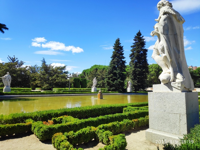 They are the gardens of the Royal Palace of Madrid, inaugurated by King Juan Carlos I in 1978. They honor the name of Sabatini (1722-1797), an Italian architect of the eighteenth century who designed the palace and the royal stables, which were previously located on this site. In 1933, construction of the gardens began, which was not completed until the late seventies. The gardens have a neo-classical style, consisting of well-interrupted plant beds, with symmetrical geometric patterns, adorned with a pond, statues and fountains. The statues represent those Spanish kings, a great place to relax and take a walk inside.