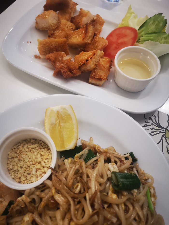 Jasmine Thai Restaurant serves a variety of delicious Thai dishes such as Pad Thai noodles. It has an elegant interior design and a warm atmosphere suitable for families. It is also distinguished by its friendly service and wonderful staff.