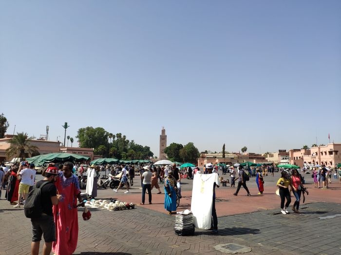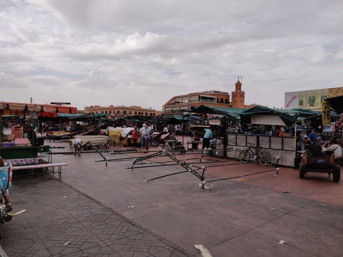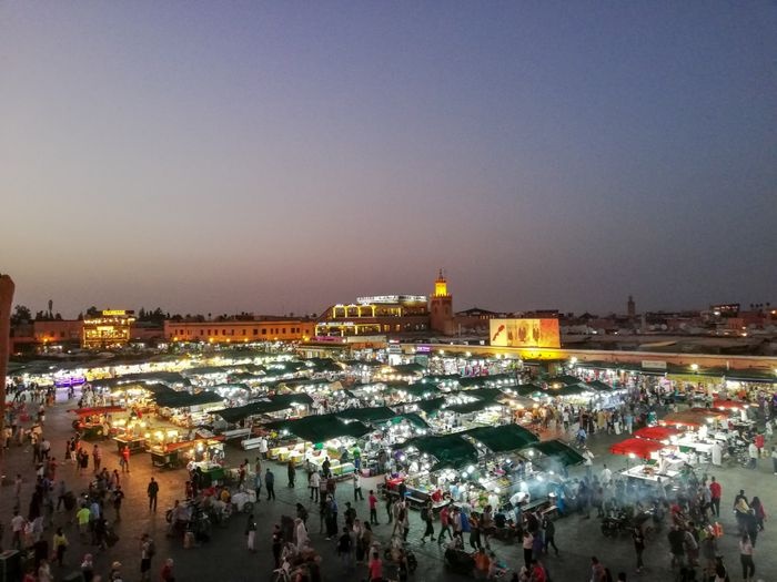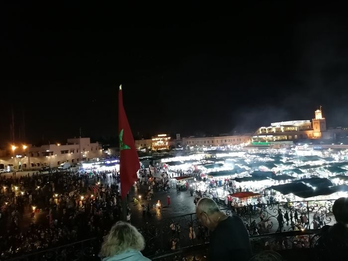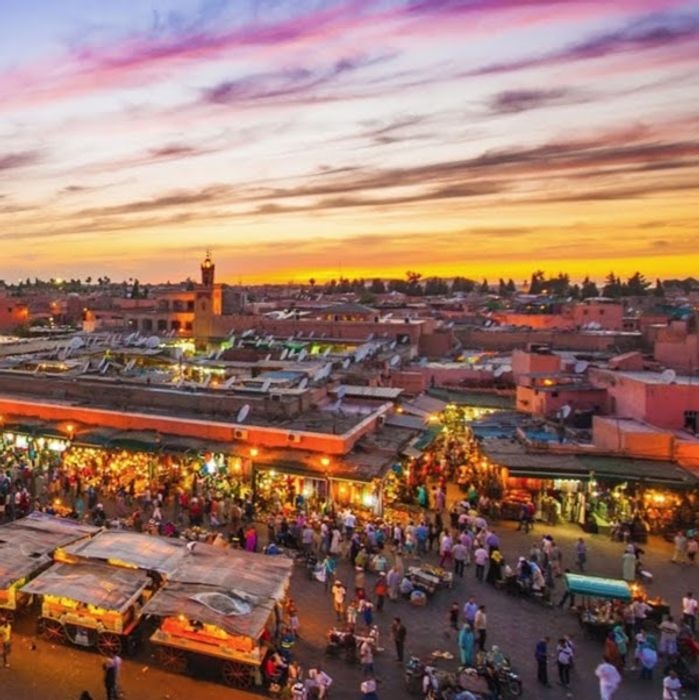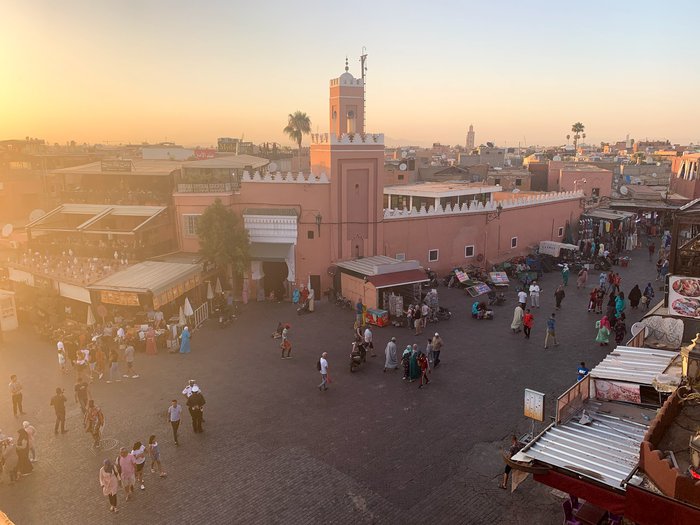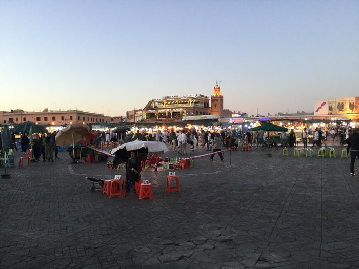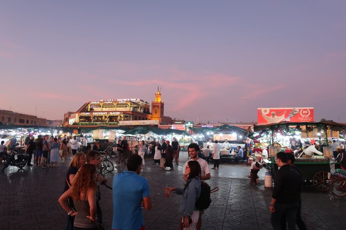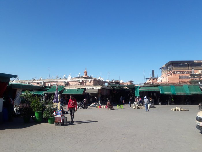 Jemaa El Fna square located in the heart of the Moroccan city of Marrakech is one of the most important and largest central squares in the city, and it includes a group of vendors specializing in selling many distinctive products and commodities at reasonable and reasonable prices, and the voices of the vendors are raised to attract visitors, where there are vegetable and fruit sellers, and handicraft sellers Beautiful, and a number of popular and local restaurants and cafes that sell delicious meals and Moroccan food. In addition, many entertaining entertainment shows are hosted in this arena, such as snake shows of different sizes, singing shows, magic tricks, and many other interesting aspects that make this market lively and vibrant.