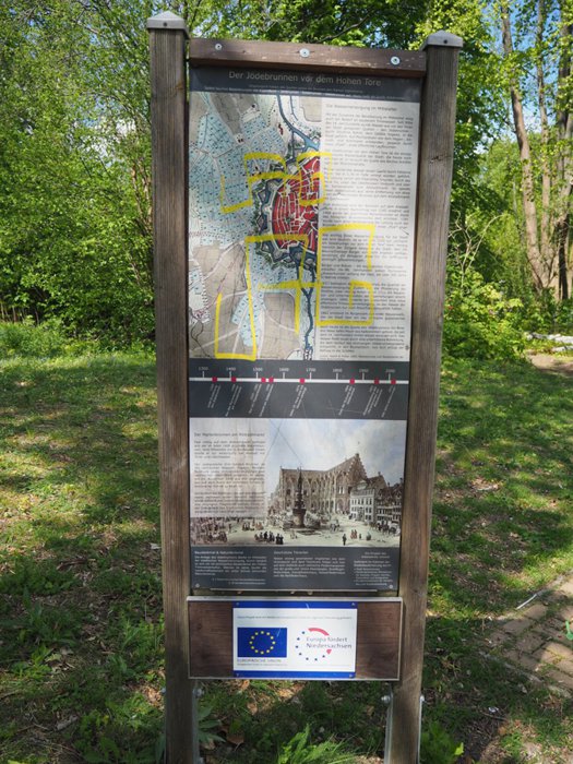 The Jude's Fountain is a spring in the urban area of Braunschweig, which supplied the Old Town with drinking water for several centuries until the late 19th century. This fountain was mentioned as early as 1345 and is therefore the oldest evidence of a drinking water supply in the city. In the 14th century, the spring was surrounded on three sides by a sand-lime brick wall 90 cm thick, which created a square pond and the fountain is still there today.