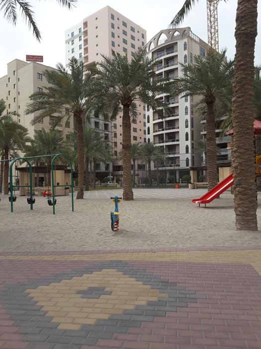 Juffair Park, with its tall palm trees, perennial green trees, colorful flowers and plants scattered throughout it, is an outlet for the residents and visitors of Manama amidst a number of tall buildings and skyscrapers. The park can be visited at any time of the day to enjoy a picnic with family members or friends, or to walk and take souvenir photos throughout it.