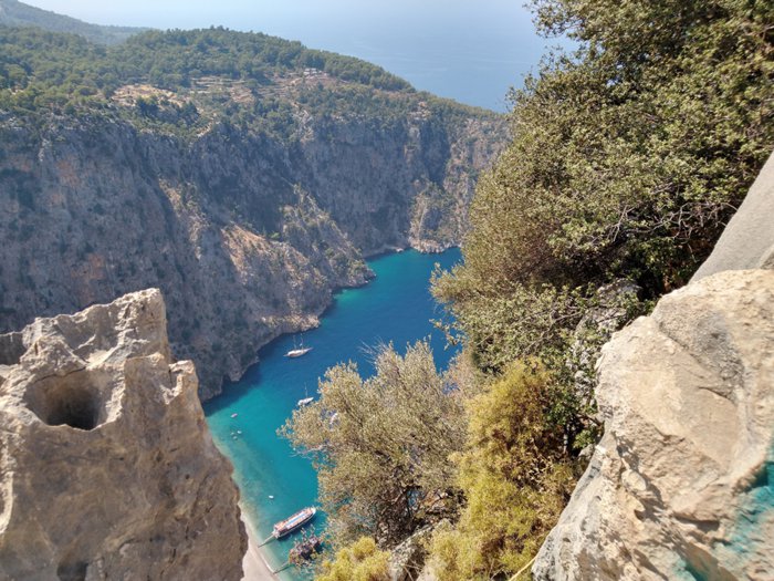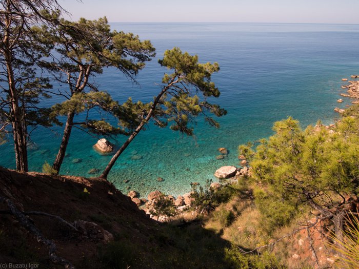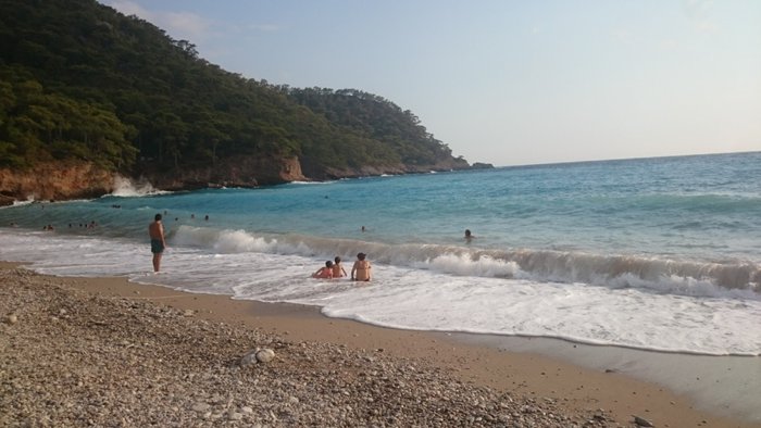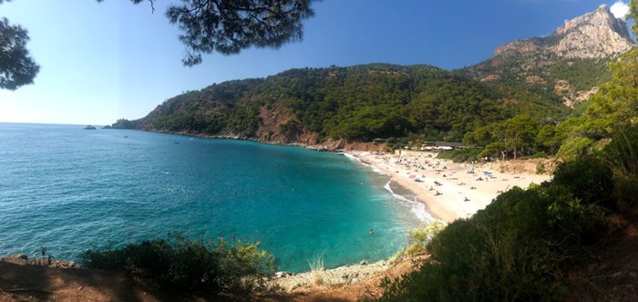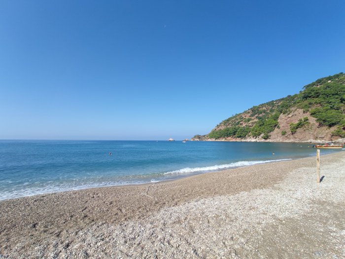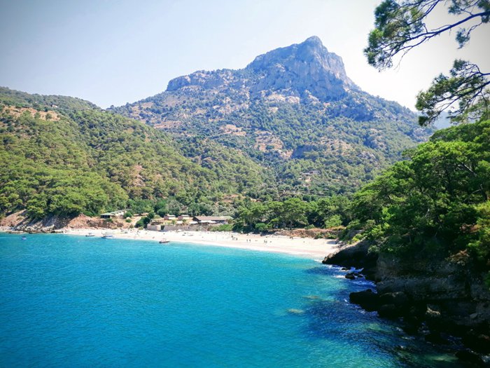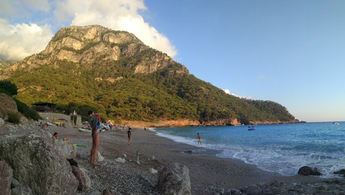 Kabak Beach is located on Kabak Bay, below a series of mountains filled with forests, and extends towards the clear blue Mediterranean Sea. The city, where visitors can swim, snorkel, sunbathe or relax under the shade of pine trees.