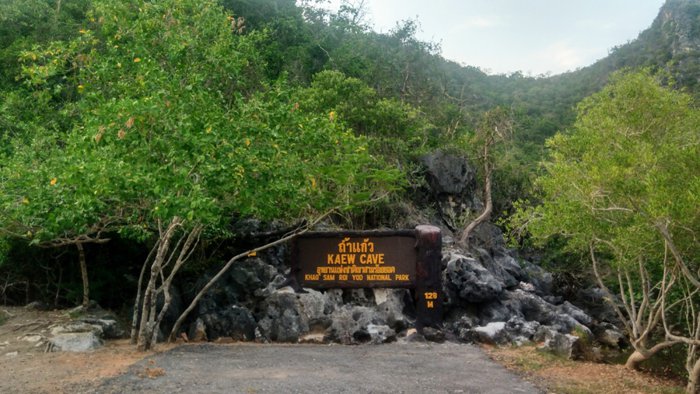 Kaew Cave is located in the Hop Chan Valley within the Sam Roi Yot National Park, about two kilometers from the bend to the village of Bang Bo. It is a small cave that includes a group of stalactites, stalagmites, and ornate rock formations. It is also a dark and mysterious cave, and its visit requires the accompaniment of an expert local tourist guide with its hidden edges. and its bewildering tunnels, and is entered by descending a ladder and then maneuvering through a series of chambers of different sizes that are connected to each other through passages.