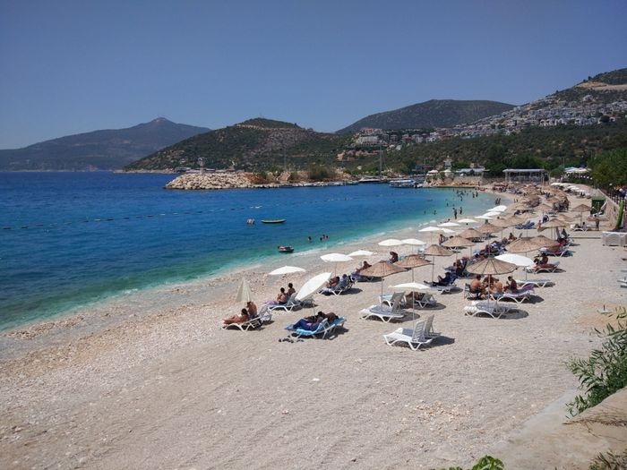 Kalkan Public Beach, also known as Beldye Public Beach, enjoys its clear waters, turquoise in color, and its pebbly beach, in addition to its privileged location in the center of Kalkan. It is also one of the most beautiful and famous beaches of Kalkan, as the most characteristic of this beach is the purity of its waters. Even when the waves hit you, due to the pebbly nature of the beach. This beach allows you to use the shower for free, in addition to the possibility of obtaining a sun bed and an umbrella for 5 TL each.