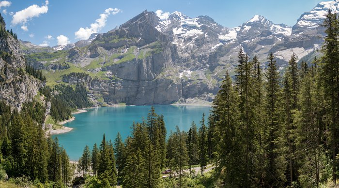 Kandersteg is one of the most beautiful Swiss tourist villages, located at high altitudes in the Bernese Oberland region, about an hour away from the city of Interlaken, and there are many wooden chalets and cute huts, as it is a popular destination for tourists throughout the year, as it turns in winter to a destination for winter sports. Like skiing, it also contains many interesting camping places for adventure and adrenaline lovers.