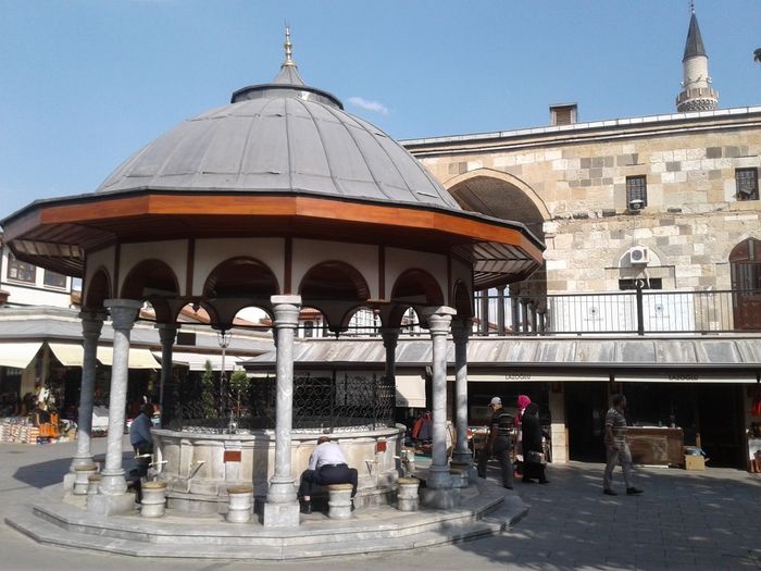 It is one of the most prominent mosques in the city of Konya, and it was named by this name because it is located near one of the gates of the fortress of Konya Castle, and the Kabu Mosque was built in 1658 AD, and it went through many changes and circumstances until it was rebuilt more than 3 times, and the mosque is distinguished by its ideal design in the old classical style, which is One of the largest mosques in the city of Konya, and there are 10 marble columns connected in the last group to each other through circular arches. The mosque is covered with eight domes, and outside there is a wonderful fountain built in 1812 AD.