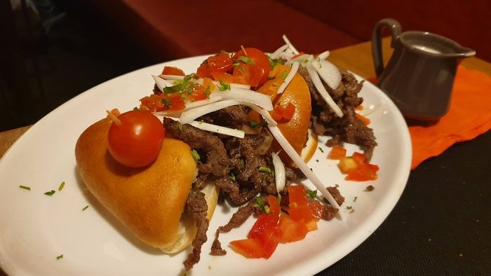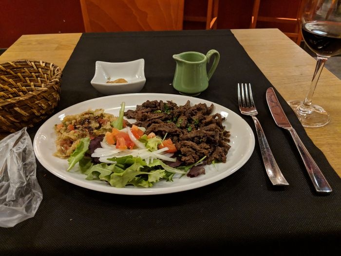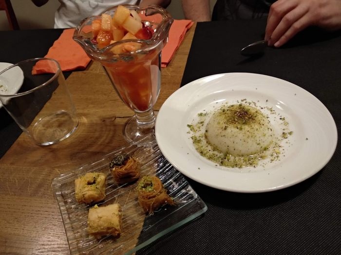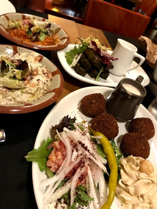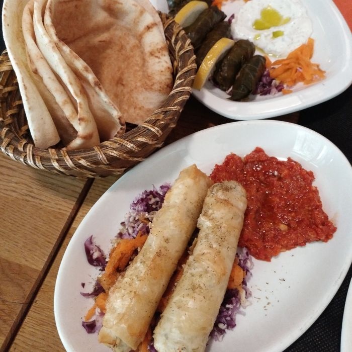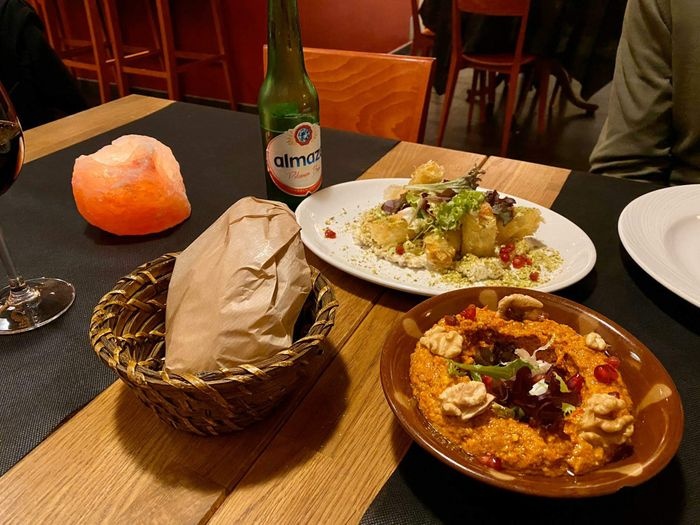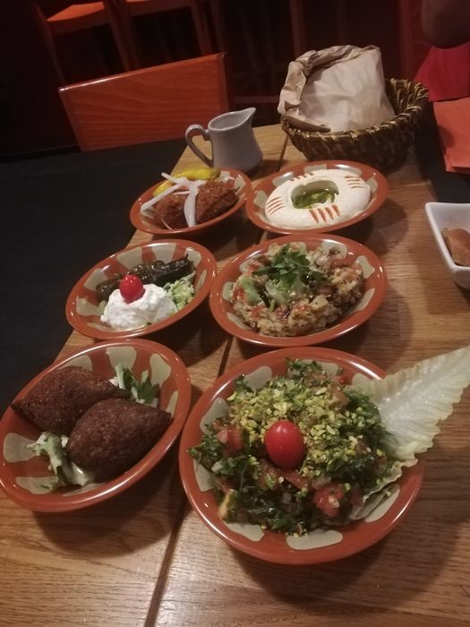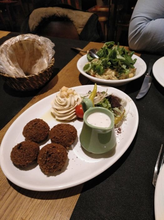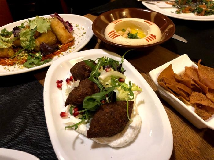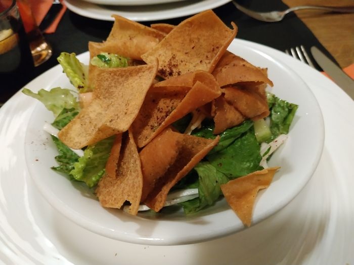 Middle Eastern restaurant with simple modern decor and a relaxed and pleasant atmosphere. The restaurant serves many Arab and Middle Eastern foods, including cold appetizers such as hummus, muttabal, labneh, and Baba Anouj, and of course a group of side dishes such as falafel, samosas, grape leaves, and kibbeh. In addition to salads, including tabbouleh, fattoush, pasta salad, tahini salad, and others. As for the main dishes, various grill dishes are available, including kebabs, shish tawook, couscous, Moroccan tagine, shawarma dishes, various rice dishes, and others. In addition to types of sweets, including pudding and baklava.